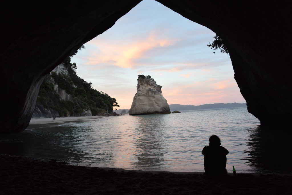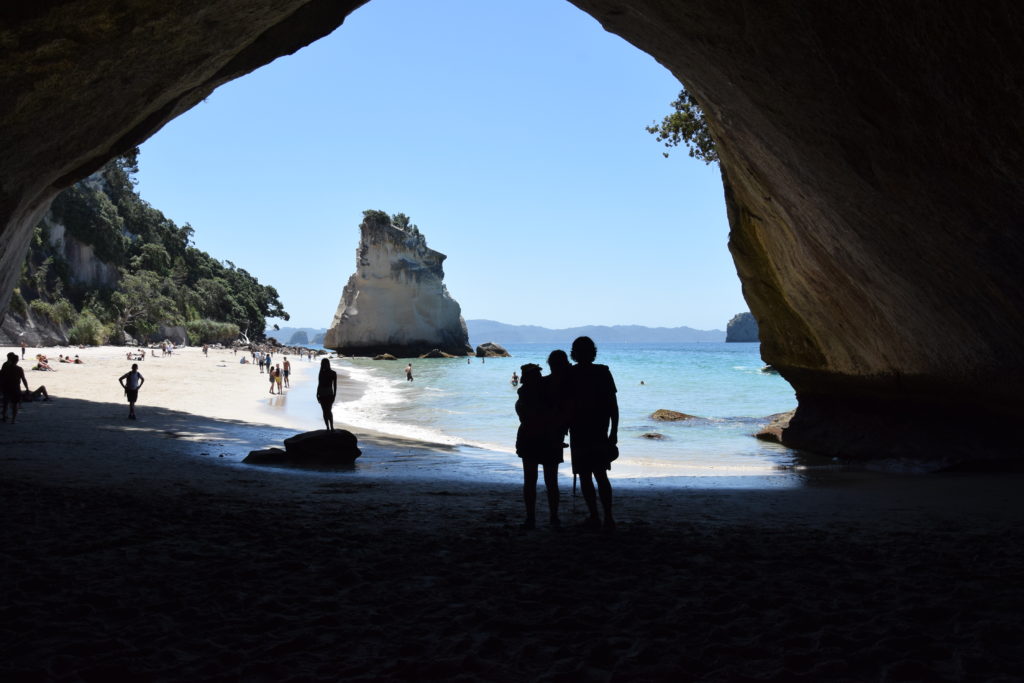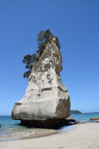 Eine weitere Attraktion auf der Coromandel ist die „Cathedral Cove“. Diese ist nur zu Fuß erreichbar (ca. 45 Minuten) und die dortige Höhle verbindet 2 Strände, die bei Ebbe durchgehend begehbar sind. Leider mussten wir uns deshalb (wie alle anderen Touristen) in der Mittagshitze auf den Weg machen – aber schlußendlich hat es sich gelohnt!